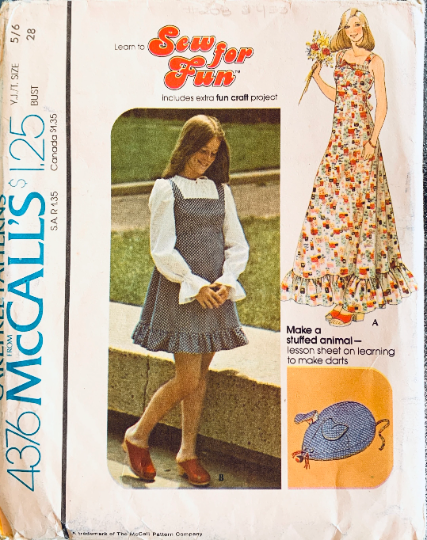 I listed this pattern the other day in the Etsy shop. I’d never seen this series before. It’s called the Sew for Fun series, and the patterns came out in 1974 and early 1975. The styles are the cute boho/cottagecore patterns so popular in the time. This one features a maxi dress with Gunne Sax vibes. It can be made in the shorter mini length as well.