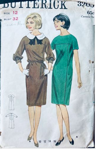 This pattern is a prime example of how one pattern can serve up two completely different garments. The difference is in the details. It’s Butterick 3205, from 1964.